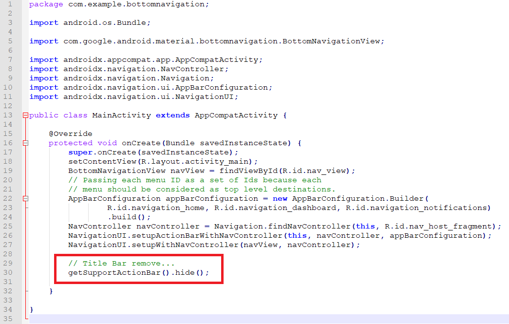 getSupportActionBar().hide();