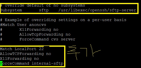 Subsystem sftp 공간에 매칭 로컬포트 기입