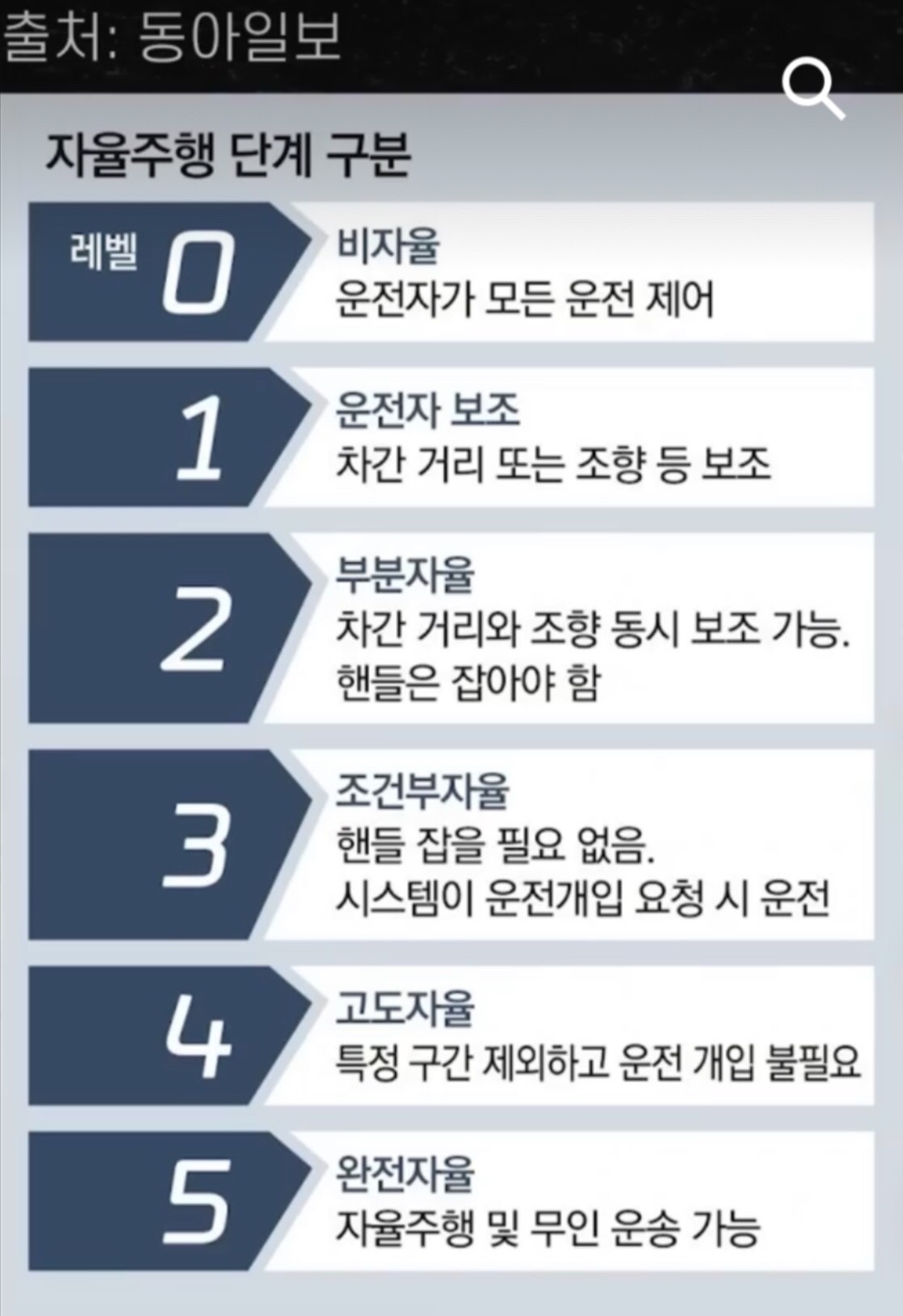 자동차 자율 주행 단계 구분