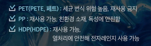 생수병의 재질에 따른 재사용 가능여부